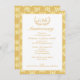 Este convite de 50º aniversário de casamento apresenta um elemento decorativo, área de texto branca e um fundo com padrão damasco. Está pronto para ser personalizado e é ideal como um convite de 50º aniversário de casamento para uma festa semiformal ou formal.