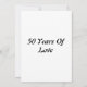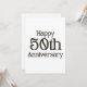 Este convite apresenta as palavras "Feliz 50º Aniversário" em uma fonte de impressão única com letras douradas e contorno preto. Impresso em um papel clássico, completo, com 17,5 pt de espessura e acabamento fosco não revestido com textura de casca de ovo, feito e impresso nos EUA, com 50 Anos de Amor impresso no verso.