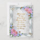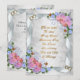 convite de 50º aniversário de casamento para os pais com belas orquídeas rosa, flores azuis, corações dourados, borboletas e fitas. Personalize o interior deste convite com as informações da sua festa