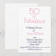 Um lindo convite de 50º aniversário cor-de-rosa e azul-marinho que você pode personalizar e enviar para a celebração do seu aniversário de cinquenta anos. As palavras "50 e Fabuloso" são definidas usando tipografia popular. Um padrão azul marinho adorna o verso do cartão. Outras cores e padrões estão disponíveis.