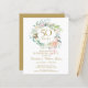 Apresentando uma delicada cor d'água verde-verde-verde-verde-terra, este convite de 50 anos de casamento para a festa de surpresa botânica chic pode ser personalizado com suas informações especiais de aniversário de ouro. O reverso apresenta uma vila floral correspondente que enquadra as datas de aniversário em um texto elegante branco sobre fundo dourado. Projetado por Thisnotme©