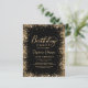 Convites de festa de 60 anos com brilho dourado e preto elegantes e modernos. Este design de cartão feminino adulto apresenta caligrafia estilosa e manuscrita em dourado sobre fundo preto com uma borda de brilho solto. Fácil de personalizar, perfeito para qualquer idade.