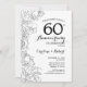 Convite de aniversário de casamento de 60 anos Floral Preto Branco. Design moderno minimalista com desenhos de esboço botânico e fonte de letra script. Cartão de convite elegante perfeito para uma celebração sofisticada. Pode ser personalizado para qualquer ano de casamento. Convites impressos da Zazzle ou modelo digital para impressão instantânea.
