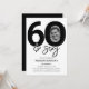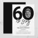 Convite de aniversário de 60 anos editável e elegante com 60 & sexy, um grande 60 com uma foto dentro do zero, com fonte preta sobre um fundo branco clássico e um modelo de celebração de aniversário que é fácil de personalizar.