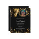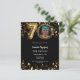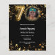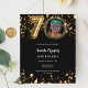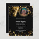 Um convite para fotos moderno e na moda para uma festa de aniversário 70. Um fundo preto clássico, decorado com estrelas douradas falsas. Personalize e adicione os detalhes da sua festa. 1 folha = 1 convite impresso de borda a borda.