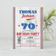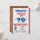 Qualquer Idade - você pode editar o número como quiser. Você pode mover e redimensionar a cauda do texto para ajustado seu nome. Espanhol de madeira russa para um convite chic mas clássico para adultos ou crianças. Tema de cor vermelha e azul.