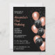 Convite de 73º aniversário Rose gold Balloon Preto Brilho rosa dourado moderno glamour brilho caligrafia tipografia feminino marco clássico elegante