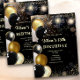 Convite de 8º Aniversário, Balão Preto Dourado Convite de 8º Aniversário, Convite de Aniversário com Confetes Imprimível, Convite de Aniversário com Bolinhas