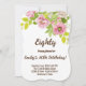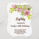 Esta design de belas convites de festas de aniversários femininas de 80 para celebrar este aniversário especial é um belo convite desenhado em delicadas técnicas de aquarela. O calor do rosa e o luxo do bege se combinam harmoniosamente para capturar o olho. As pétalas verdes claras misturadas entre os cravos adicionam vitalidade e frescura. Dá a sensação de que está cheia de energia de primavera. Todos os design são desenhados com técnicas delicadas de aquarela, com hemorragias naturais de cor e bordos moles. Ele traz à tona a atmosfera emocional e romântica única à pintura a aquarela. Ele proporciona uma atmosfera quente e feliz para compartilhar momentos especiais com seus entes queridos.
