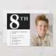 Elegante convite para o 8° aniversário Black Chic Modern calliografia tipografia clássica elegante rapaz