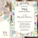 Este convite de 99º aniversário com flores silvestres em aquarela colorida é uma maneira bonita de convidar seus convidados para a festa. Este design apresenta aquarelas pintadas à mão e uma moldura formal com detalhes de texto que você pode personalizar usando o editor de texto.