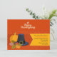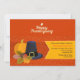Um convite animado e sazonal para o Janto de Ação de Graças. O fundo laranja tem uma abóbora, um chapéu de peregrino e folhas de queda com bolotas. A faixa lateral amarela contém as informações do seu partido. <br/>() A placa é fácil de personalizar com o seu texto, fonte, cor da fonte, opções de forma de papel e escolha de seis tipos de papel.<br/>() Não exatamente o que você está procurando? Todos os nossos produtos podem ser personalizados para atender às suas necessidades sem custos adicionais.<br/>() Basta entrar em contato conosco em askpixieprints@aol.com.<br/>() Coordenando os produtos disponíveis: Apenas nos pergunte!