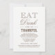 Convite de Ação de Graças Elegante Faux Dourado Agradecido Grato Abençoado; Coma, Beba e seja Agradecido