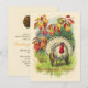 Convite de jantar de Ação de Graças personalizável com uma bela ilustração vintage de peru, folhas de outono e frutas da colheita de outono.