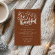 Convide sua família e amigos para uma celebração de Ação de Graças calorosa e acolhedora com este convite de jantar "Seja Grato". Com um rico fundo marrom adornado com folhas de outono caprichosas e script elegante, este design incorpora o espírito de gratidão e união. Perfeito para criar um clima aconchegante e festivo para sua reunião de Ação de Graças.