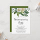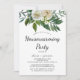 Dê as boas-vindas aos convidados em sua nova casa com este elegante convite de inauguração. Perfeito para uma reunião de primavera, apresenta um design floral atemporal com rosas, peônias e crisântemos suaves marfim e branco, acentuados por delicadas flores de água-marinha azul e folhagem verde exuberante.