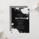 Use este convite de almoço elegantemente projetado para suas necessidades pessoais ou comerciais. Este convite apresenta um fundo preto com uma sobreposição de flores brancas com folhas prateadas e brilho prateado no verso, tornando este convite deslumbrante.