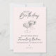 Celebre seu dia especial com este modelo de convite de aniversário chic e minimalista! Apresentando um delicado fundo cor-de-rosa-pincelado, fontes elegantes de script e uma ilustração desenhada à mão de coupes de champanhe, este convite expele sofisticação e diversão.