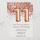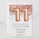 Convite de aniversário 11 rosa Dourado e convite de aniversário-ouro elegante e moderno 11 para uma menina de 11 anos com escrevendo de escrita moderno e balões de folha divertida com fundo de papel de textura impresso.