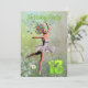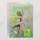Uma bela fada de flores de bailarina dançando em um convite de aniversário. A bailarina está vestindo um tutu branco, e tem rastros de flores vindo de seu cabelo. Ela está dançando através de um cheio de margaridas.
