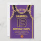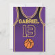 Celebre seu dia especial com este Convite de Aniversário de Basball Jersey, projetado para fãs de basquete verdadeiros! Com uma design ousada de camisa inspirada pelas icônicas cores roxa e dourada, este convite é perfeito para crianças, adolescentes e adultos que adoram o jogo. Personalize-o facilmente com seu nome, idade, detalhes de festas e até mesmo o número do grupo em apenas alguns cliques. Disponível em vários tamanhos, impresso em papel de qualidade superior com uma grande variedade de acabamentos para corresponder ao seu estilo. Escolha dentre diferentes tipos de papel, impressão rápida e envio rápido para que seus convites cheguem a tempo. Seja para uma festa com tema desportivo ou para uma comemoração de fãs Lakers, este convite é a forma perfeita de entusiasmar os vossos convidados.