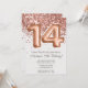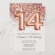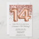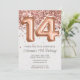 Convite de aniversário 14 rosa Dourado e convite de aniversário-ouro elegante e moderno 11 para uma menina de 11 anos com escrevendo de escrita moderno e balões de folha divertida com fundo de papel de textura impresso.