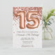Convite de aniversário 15 rosa Dourado e convite de aniversário-ouro elegante e moderno 15 para uma menina de 15 anos com escrevendo de escrita moderno e balões de folha divertida com fundo de papel de textura impresso.
