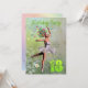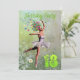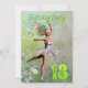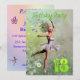 Uma bela fada de flores de bailarina dançando em um convite de aniversário. A bailarina está vestindo um tutu branco, e tem rastros de flores vindas de seu cabelo. Ela está dançando através de um cheio de margaridas.