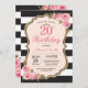 Convite de aniversário de 20 de Peonies Rosa Floral para mulheres. Dourada Glitter. Chic Flor Floral de Cor de Água Espelhada. Black and White Stripes. 13 15 16º 18º 20 21rua 30 40º 50º 60º 80 de 70 100º, qualquer idade. Digital Imprimível. Para mais personalização, clique no botão "Personalizar" e use nossa ferramenta de design para modificar este modelo.