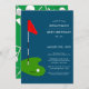 Uma simples ilustração de uma bandeira vermelha de golfe, bola verde e golfe em um fundo azul escuro neste Convite de aniversário. Use este cartão para celebrar o aniversário de 50 anos do seu amigo, marido, colega de trabalho, parceiro etc. com um jogo de golfe seguido de bebidas e jantas celebratórias. Adicionamos um padrão com tema de golfe com carrinhos, clubes, bolas e bandeiras na parte de trás do cartão e mudamos a cor de fundo. Você pode personalizar o conteúdo do seu coração; até mesmo ocultar o padrão e adicionar uma foto, se preferir.