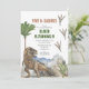 Convite de aniversário T-rex para um dinossauro pequeno. Borda de dinossauros realísticos de aquarela.