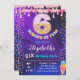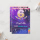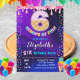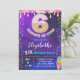 Seis colores bonitos e coloridos de convite de aniversário divertido para a garota. Isso é vibrante com roxo e rosa com cone de sorvete número 6 com muitos borrifos.