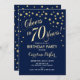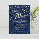 design Elegante do Convite de aniversário 70 em ouro e marinho falso brilhante. Saúde para 70 anos!