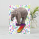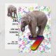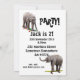 Um convite de aniversário divertido para o macaco-preguiçoso da sua família. Um elefante bebê parado em um número, com muitos números caindo no fundo. As costas têm elefantes em skates.