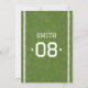 8º Convite de aniversário desportivo para o seu filho estrela! O número 8 é feito de bolas de futebol, bolas de futebol, bolas de basquete e bolas de golfe sobre fundo de grama verde. Design continua atrás parecendo uma camisa com nome e idade de aniversário. Seus amigos e família terão uma bola nesta festa de aniversário.