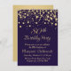 Ouro round confetti no Convite de aniversário 80 de fundo de gradiente violeta