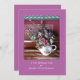 A frente deste convite é uma fotografia original de belas flores em um bule vintage, em um fundo púrpura pálido. A cor de fundo é "Orquídea Radiante", a Cor Pantone do Ano para 2014. O texto é branco. Um belo convite para uma festa de aniversário 90. Foto original de Marcia Socolik. Todos os Direitos Reservados © 2014 Alan & Marcia Socolik.
