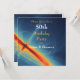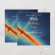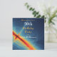Um convite de festa de 50 anos legal e cósmico. Um design abstrato dinâmico e interessante. Uma cor azul profunda com redemoinhos de círculos azuis claros e espirais se movendo para cima e para fora a partir de um centro alongado laranja brilhante e amarelo. Parece um pião ou o centro de uma galáxia com luz irrompendo para frente.