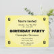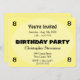 Amarelo com grandes números negros dá a isto um olhar moderno. Adicione a idade ou deixe-a vazio - Back diz Vem Festa, mas pode ser mudada para dizer o que você gosta. Preencha com as informações de RSVP.