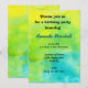 Uma textura de aquarela em amarelo limão e azul turquesa. As cores se misturam e se fundem para criar tons de verde tranquilo e formas semelhantes a nuvens e flores de cor. Personalize com os detalhes da sua festa de aniversário.