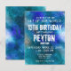 Cartão de Convite de Aniversário Aquarela Azul Aqua Galáxia. Ótimo para meninos e meninas.