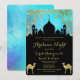 Convite de festa temática Árabe Noites em azul e dourado. Perfeito para aniversário de qualquer idade, festa de debutante ou Quinceanera