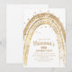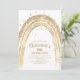 Convite de festa de aniversário doce arco-íris e estrelas em dourado brilhante, apresentando um arco-íris dourado moderno com estrelas espalhadas. O convite também possui um modelo de convite de festa de aniversário fácil de personalizar, os estilos, tamanhos e cores das fontes podem ser alterados clicando no link personalizar após personalizar.