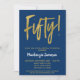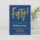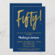 Um elegante, simples mas impressionante convite de aniversário azul e marinho 50º. Texto do script de visão na parte superior e texto dourado abaixo com o nome em branco sobressalente