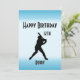 Um convite divertido com o jogador para jogar no gradiente azul. As palavras feliz aniversário podem ser mudadas. Adicione os nomes, a data e os detalhes. Um belo convite que pode ser facilmente personalizado para muitas ocasiões especiais e comemorações de marcos felizes — o texto pode ser usado para qualquer evento, incluindo festa de aniversário, festa de aniversário, casamento, salvar a data, caso exclusivo ou evento.