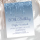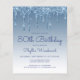 Este convite de aniversário de tendências apresenta uma borda cintilante azul esparso e borda azul ombre. O ano de aniversário e o nome do convidado de honra aparecem em um roteiro casual de escrita manual azul, com o resto do texto personalizável em fontes azuis sans serif. O mesmo design de gota a gota azul aparece no verso.