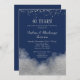 Um convite de aniversário de casamento elegante em azul marinho e prata com poeira de confete prateado no topo e brilho prateado na parte inferior.
