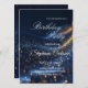 Convite de Aniversário Azul Marinho e Dourado Eleg