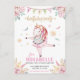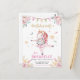 Este lindo design certamente agradará à sua pequena bailarina no dia da sua festa de aniversário. Este design de convite de cartão postal apresenta uma bonita bailarina unicórnio decorada com detalhes florais rosa, pena, corações e uma faixa que diz "Festa de Aniversário Feliz."