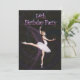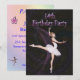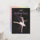 Uma bela bailarina dançando em um convite de aniversário. A bailarina está vestindo um tutu branco, e está no ponto.